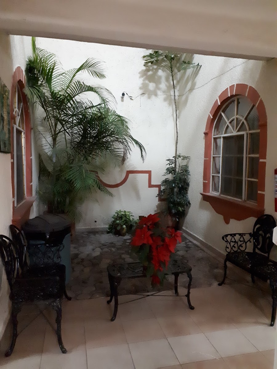 Creo que el precio calidad es justo, estuvimos comparando precios y en otros hoteles sobre Av. El precio es más alto. No sabía que contaba con alberca (el agua es limpia aunque está fría) fue un extra, tiene estacionamiento; el baño era amplio y limpio; las habitaciones tienen buena presentación.No me tocó batallar con mosquitos. A mí parecer el colchón es duro y sus almohadas aunque no está tan mal. Lo que de plano es un problema es que solo había un contacto para conectar el teléfono o algo más y está arriba en el techo junto a la televisión, así que es peligroso e incómodo y aparte hay que buscar de que manera acomodar el teléfono y desconectar la televisión si necesitas otro más.